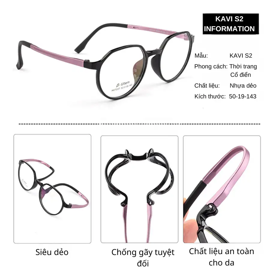 - Gọng kính chất liệu nhựa Utem cao cấp, siêu nhẹ, bền, dễ uốn nắn vừa khuôn mặt