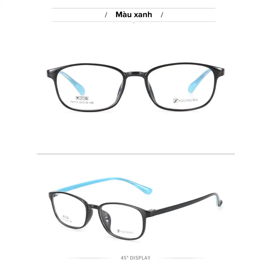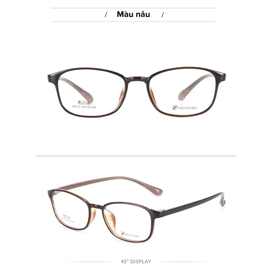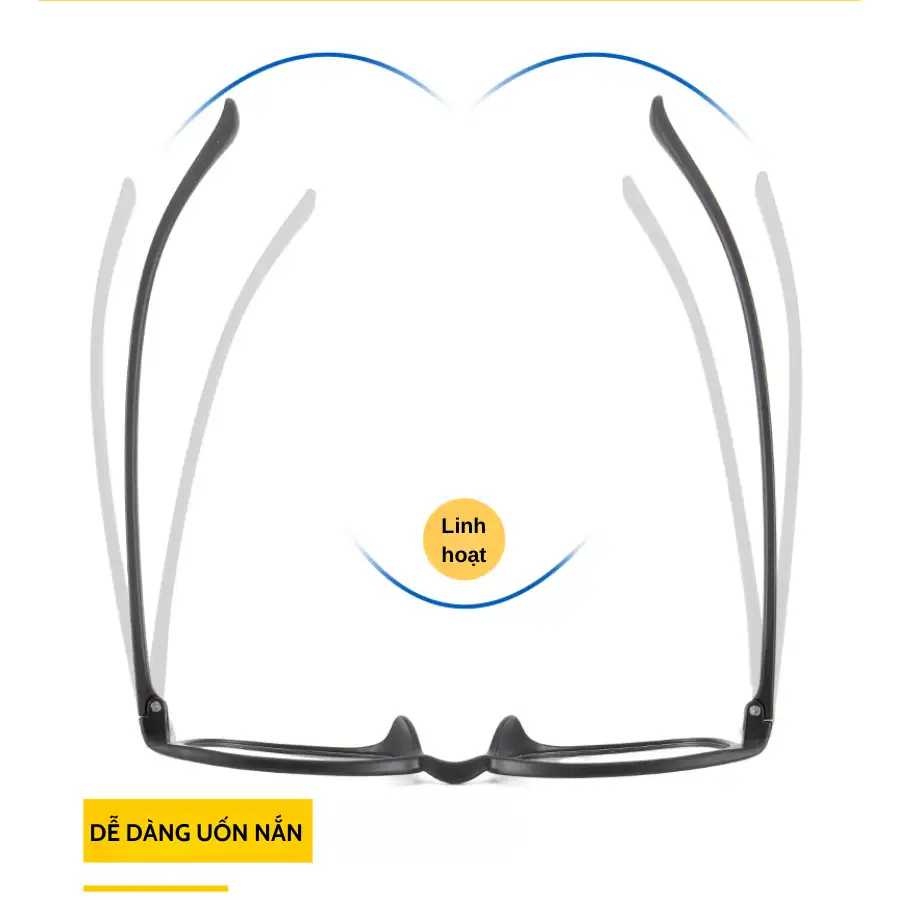 - Gọng kính chất liệu nhựa dẻo TR90, nhẹ, bền, dễ uốn nắn vừa khuôn mặt